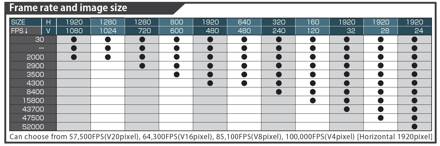 全高清最高帧率可达2000fps