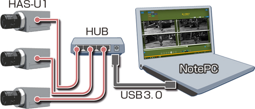 ■只需一台笔记本电脑即可完全同步多台高速相机