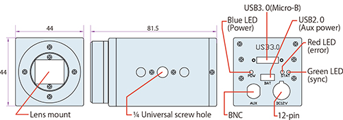 HAS-U1是一款高速相机,配备了1/2英寸CMOS传感器和1.3M 1280×1024有效像素,可以以全分辨率拍摄200fps,在VGA下为800fps,并通过限制像素区域达到最高4,000fps。