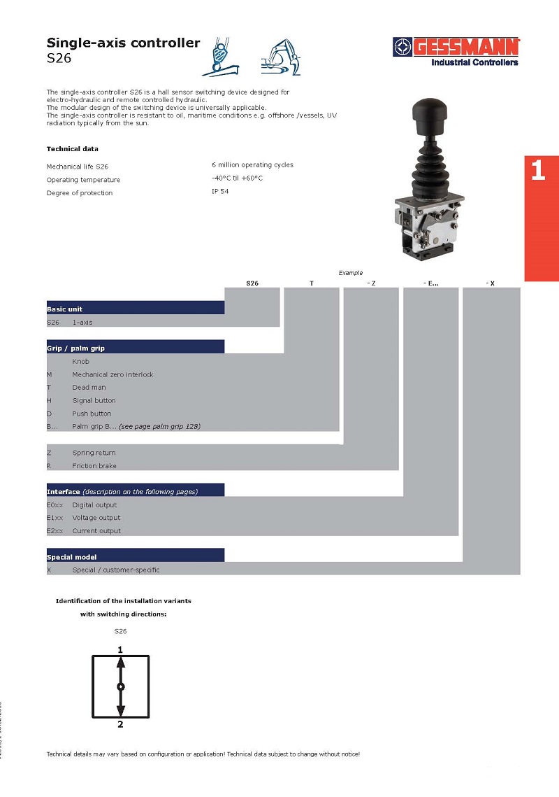 简述: 单轴控制杆S26是霍尔传感器型操作杆装置,专为电液控制和远程液压控制而设计。模块化设计使其适用性非常强。单轴控制杆S26可应用于耐油的,海洋条件,例如海上/船只,紫外线辐射等恶劣条件。