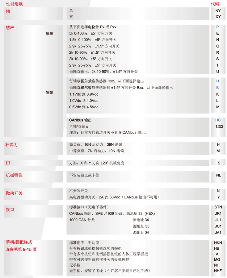简述: JC6000加固型操纵杆控制器设计用于要求苛刻的操作控制应用,包括非公路车辆和其他人机界面,在这些应用中,控制杆强度、信号可靠性和手柄功能性非常重要。此操纵杆采用单轴或者双轴配置,可配备非接触式霍尔传感器或耐用的电位计轨道。JC6000具有紧凑的尺寸、较高强度的控制杆和出色的比例控制,是各种非公路车辆的理想操作控制应用,包括起重机、装载机、挖掘机、升降平台、牵引车和收割机等。