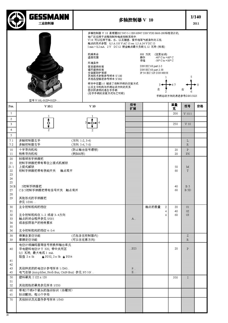 简述: 多轴控制杆 V 10 是根据IEC 947-5-1 EN 60947 DIN VDE 0660-200标准设计的,广泛应用于远程控制和电液控制系统中.V 10 可以应用于油、水,以及潮湿,紫外线等气候条件的工况.