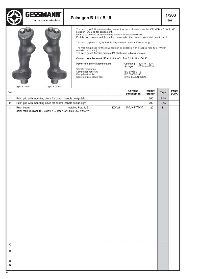 简述: B14握把是用于多轴控制杆V8,VV8, V6,VV6,VV5的左手执行单元,B15是右手执行单元。它也可以用于液压驱动的执行单元。按钮,翘板开关等可以灵活调整满足各种不同的应用。