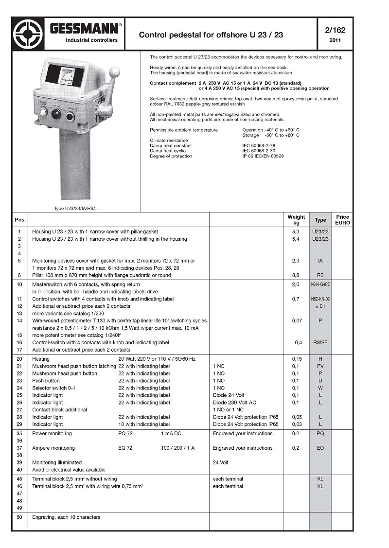 简述: 控制基座 U23能够安装控制和监控所需的元件.接好线,能够快速简易的安装于海上甲板设备.耐海水铝合金制成的罩壳(基座壳).