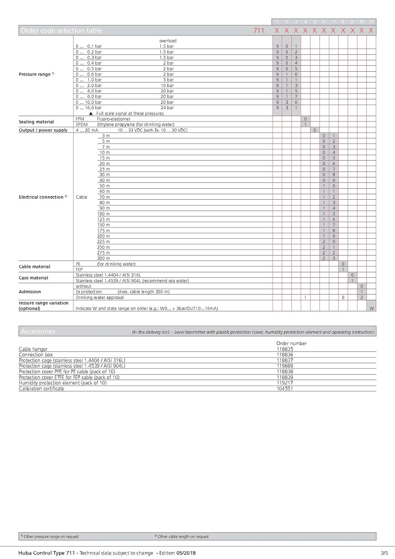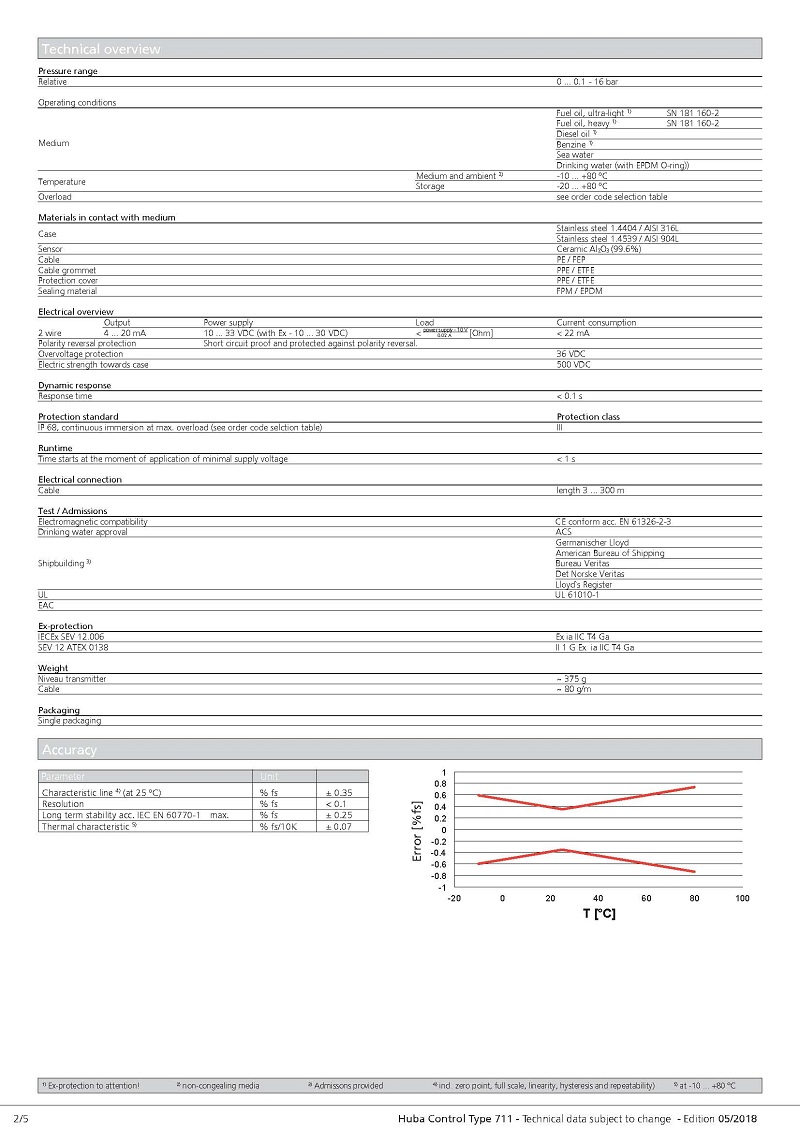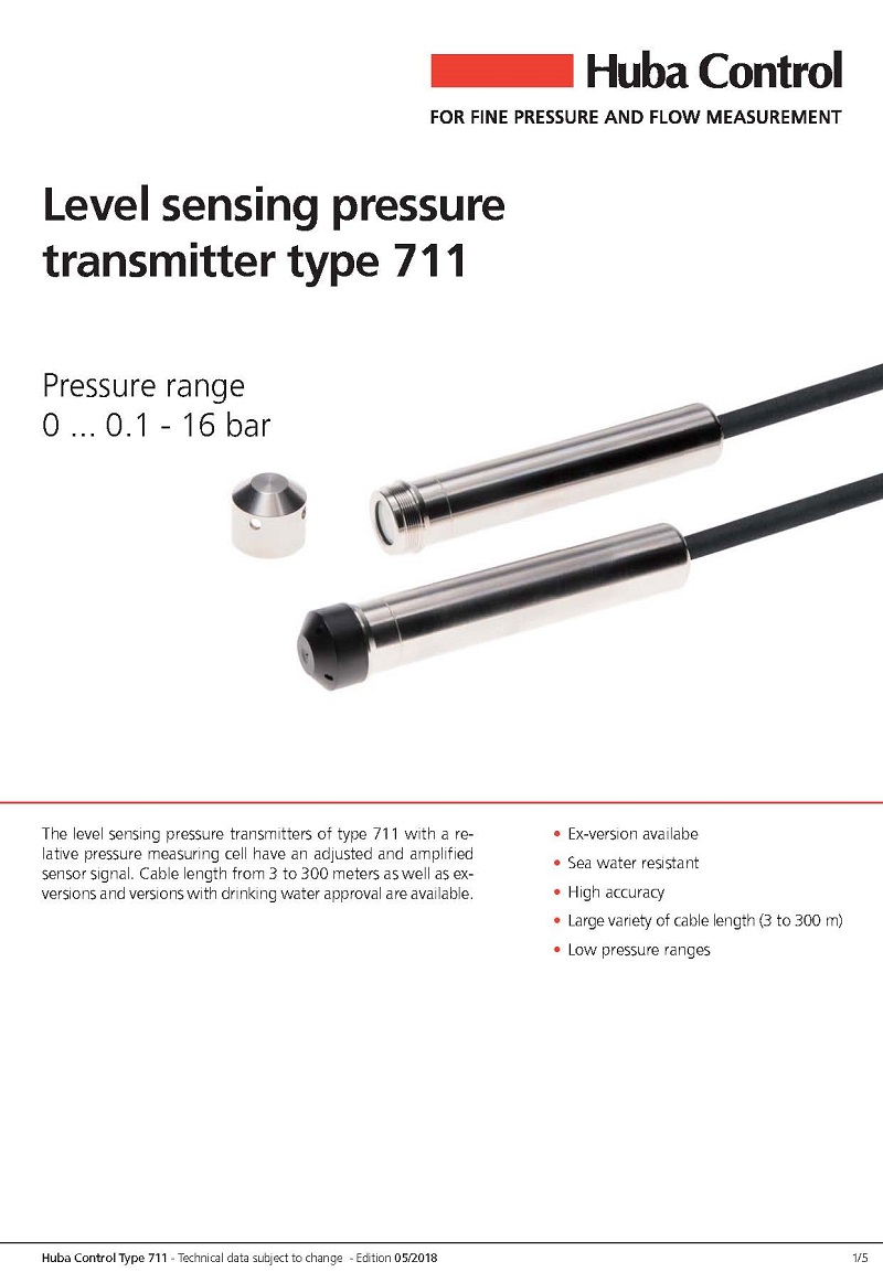 简述: 用于液位测量的711型压力变送器具有相对压力测量单元,具有可调整和放大的传感器信号。 电缆长度从3米到300米不等,具有防爆版本和饮用水批准的版本可用。
