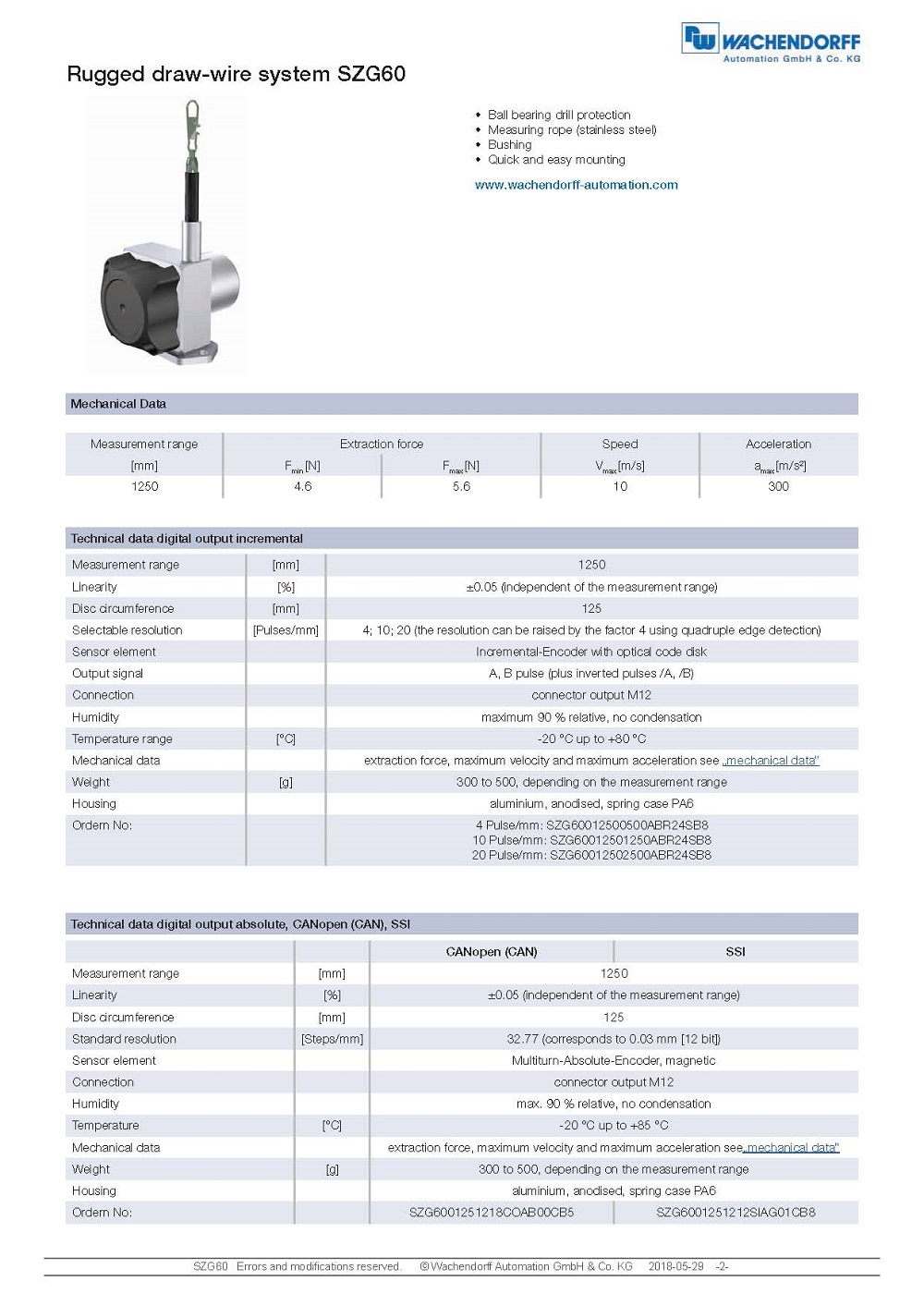 产品名称: SZG60 拉绳传感器