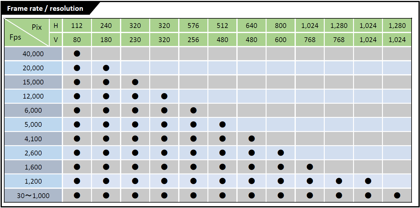 1000 FPS在1280×1024像素分辨率下。